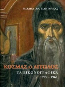 Πηγή: Ἡ παρουσίαση τοῦ βιβλίου τοῦ κ. Μιχαὴλ Φρ. Παντούλα, μὲ τίτλο «Κοσμᾶς ὁ Αἰτωλός. Τὰ Εἰκονογραφικά 1779-1961», ἀπὸ τὸν κ. Νῖκο Δ. Καράμπελα, ἡ ὁποία ἔγινε στὸ Πνευματικὸ Κέντρο τῆς Μητροπόλεως Νικοπόλεως καὶ Πρεβέζης, τῇ 22α Μαΐου 2016. Τὸ πόνημα τοῦ φιλολόγου καὶ ἐρευνητή κ. Μιχαὴλ Χρ. Παντούλα, ἀποτελεῖ μία διαφορετικὴ προσέγγιση τοῦ Κοσμᾶ τοῦ Αἰτωλοῦ. Εἶναι μία προσπάθεια καταγραφῆς ὅλων τῶν ἁγιογραφικῶν ἀπεικονίσεων τοῦ Πατρο- Κοσμᾶ τοῦ Αἰτωλοῦ ἀπὸ τὸν χρόνο ποὺ μαρτύρησε, τῷ 1779, ἔως τὸ ἔτος τῆς ἁγιοκατατάξεώς του, τῷ 1961. Ὁ κ. Μιχαὴλ Παντούλας κατόρθωσε σὲ χρονικὸ διάστημα τεσσάρων περίπου ἐτῶν νὰ ἐντοπίσῃ καὶ καταγράψη διακόσιες περίπου εἰκόνες καὶ τοιχογραφίες, ταξιδεύοντας, ἀπὸ τὴν Κρήτη ἔως τὸ Βουκουρέστι καὶ ἀπὸ τὰ Τίρανα ἔως τὸ Ἅγιον Ὄρος γιὰ τὸν σκοπὸ αὐτό.