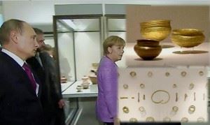 ……….Στὶς 21 Ἰουνίου τοῦ 2013, στὸ πλαίσιο τοῦ «Διεθνοῦς Οἰκονομικοῦ Φόρουμ τῆς Ἁγίας Πετρουπόλεως», ἡ Γερμανίδα Καγκελάριος Μέρκελ καὶ ὁ Ῥῶσος Πρόεδρος Β. Πούτιν, ἐγκαινίασαν μία ἔκθεση στὸ Μουσεῖο Ἑρμιτᾶζ στὴν Πετρούπολη, μὲ τῖτλο: «Εὐρωπαϊκὴ Ἐποχὴ τοῦ Χαλκοῦ — ἡ Εὐρώπη χωρὶς σύνορα».