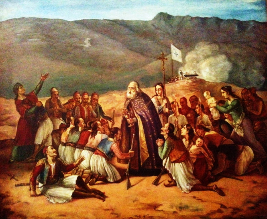 1826.—Μετά την απόφασιν τής Εξόδου (6/4), ο επίσκοπος Ρωγών Ιωσήφ, με τον αρχιμανδρίτην Ζαλογγίτην και τους ιερείς Πλατύκαν, Βάλβην και Αγλύκαντον, κοινωνούν τους κατοίκους Μεσολογγίου, ανερχομένους εις 10.500.