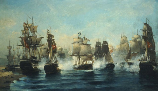 .—«Ναυμαχία ἔξω τῆς Σφακτηρίας ἀμφίρροπος, ἐν ᾖ παρέστησαν τῶν μὲν Ἑλλήνων ἀρχηγοὶ οἱ Μιαούλης, Σαχτούρης, Δ. Βῶκος κ.λ.π τῶν δὲ τούρκων ὁ Τοπὰλ πασᾶς». Μετά την πτώσιν τής Σφακτηρίας, τα ελληνικά πολεμικά «Άρης» και «Aθηνά» εξήλθαν από τον λιμένα τής Πύλου, υπό τον συνεχή κανονιοβολισμόν τού ευρισκομένου εκεί τουρκοαιγυπτιακού στόλου. Μετά από πολύωρη ναυμαχία και υπό αντιξοότατες συνθήκες, η διαφυγή τού «Άρη» αποτέλεσε σπάνιο ναυτικό κατόρθωμα, που προκάλεσε τον θαυμασμό ολόκληρης τής Ευρώπης.