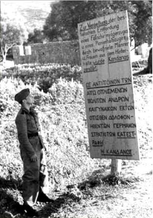.—Οι Γερμανοί, έπειτα από σκληράς και πολυημέρους μάχας, εισέρχονται εις την Κάντανο (Κάνδανο) φονεύουν τους εναπομείναντας εντός αυτής ηρωϊκούς υπερασπιστάς της, και ανασκάπτουν το χωρίον εκ θεμελίων. Εις ανάμνησιν τής θηριωδίας των, έστησαν κατόπιν τρείς πινακίδας. Μία εξ αυτών έγραφε: «Εδώ ήτο η Κάνδανος. Κατεστράφη προς εξιλασμόν τής δολοφονίας 25 Γερμανών στρατιωτικών».