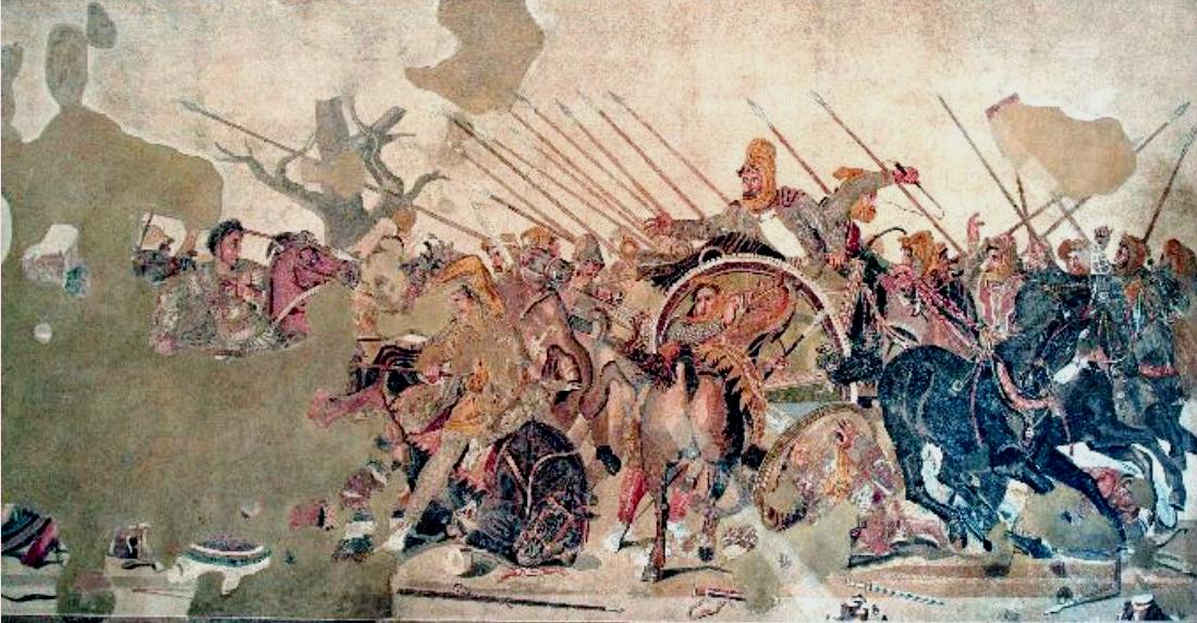 331 π.Χ.—Γαυγάμηλα, ἡ ἀμφίστομος παράταξις καὶ τὸ στρατηγικὸ δαιμόνιο τοῦ Μεγίστου τῶν Ἑλλήνων. Ὁ Μέγας Ἀλέξανδρος ἀντιμετωπίζει μὲ δύναμη 52.000 ἀνδρῶν τὶς στρατιὲς Περσίας, Μηδείας καὶ Βαβυλῶνος τοῦ βασιλέα Δαρείου, ἀποτελούμενες ἀπό 600.000 ἄνδρες, 200 δρεπανοφόρα ἅρματα καὶ δέκα πέντε πολεμικοὺς ἐλέφαντες, στὴν θέση Γαυγάμηλα. Ὁ Μέγας Στρατηλάτης γνωρίζοντας τὴν συντριπτική ἀριθμητικὴ ὑπεροχὴ τοῦ ἀντιπάλου του, ἐφάρμοσε μία καινοτομία, τὴν «ἀμφίστομον παράταξιν», ἡ ὁποία χαρακτηρίζει τὸ στρατηγικὸ του δαιμόνιο προκειμένου νὰ ἀποφύγῃ τὴν ὑπερφαλάγγιση. Ἀφοῦ λοιπὸν ἔκαμψε τὰ δύο ἄκρα τῆς στρατιᾶς τοῦ Δαρείου, ὥρμησε κατὰ τοῦ κέντρου ὅπου βρισκόταν ὁ Πέρσης βασιλέας, ὁ ὁποῖος βλέποντας τὴν ἐφόρμηση τοῦ Ἀλέξανδρου, πανικόβλητος τράπηκε σὲ φυγὴ συμπαρασύροντας καὶ τὸν περσικὸ στρατὸ στὴν ἄτακτη ὑποχώρηση. Στὴν μάχη αὐτή, γιὰ ἀκόμα μία φορὰ οἱ ὁργανωμένες καὶ πειθαρχημένες δυνάμεις τῶν Ἑλλήνων συνέτριψαν τὶς στρατιές τῆς Ἀσίας, ἀποδεικνύοντας τὴν ὑπεροχή τους.