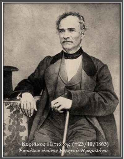 1863.—Ἀπεβίωσε ὁ Ἕλληνας ἀγωνιστής τοῦ 1821 καὶ πρῶτος ἀρχαιολόγος, Κυριᾶκος Πιττάκης. Μὲ δικὴ του προτροπή, σύμφωνα μὲ διήγηση τοῦ Ἀλέξανδρου Ῥίζου Ῥαγκαβῆ, δώσαμε βόλια στοὺς τούρκους κατὰ τὴν πολιορκία τῆς Ἀκροπόλεως γιὰ νὰ σταματήσουν τὴν καταστροφὴ τῶν ἀρχαίων μνημείων λόγῳ τοῦ μολυβιοῦ ποὺ ὑπῆρχε στοὺς συνδέσμους τῶν λίθων. Ἡ ἀπόφαση ἱδρύσεως τοῦ Μουσείου τῆς Ἀκροπόλεως λήφθηκε κατὰ τὸν χρόνο τῆς Ἐφορείας του. Τὸν πρῶτο πυρῆνα τῶν συλλογῶν τοῦ Ἐπιγραφικοῦ Μουσείου, ἀπετέλεσαν οἱ ἐπιγραφές, ποὺ μὲ συγκινητικὴ αὐταπάρνηση καὶ ζῆλο συγκέντρωνε σὲ διάφορα σημεῖα τῶν Ἀθηνῶν. Ἡ ἀνακάλυψη τῆς Πύλης τῶν Λεόντων στὶς Μυκῆνες τὸ 1841, εἶναι δικὸ του ἔργο, πολὺ πρὶν ἀρχίσει τὶς ἀνασκαφὲς ὁ Σλῆμαν.