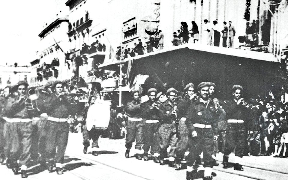 1944.—Η Ταξιαρχία τού Ρίμινι φτάνει στην Αθήνα. «Ἀπό τὴν Ὁμόνοια ὤς τὸ Γουδὶ δὲν καταλάβαμε πότε φθάσαμε, βαδίζοντας, ὑπό τὶς ἐπευφημίες τοῦ μεγάλου πλήθους. Νεάνιδες μᾶς στεφάνωναν μὲ κλάδους ἐλιᾶς καὶ λουλούδια.» Ἀνταποκριτής δημοσιογράφος τῶν Η.Π.Α. τηλεγράφησε ὅτι μία μόνο φορὰ ἔγινε τέτοια ἐνθουσιώδης ὑποδοχὴ στὴν Ἀμερικὴ σὲ Ἀμερικανὸ Πρόεδρο. Ὁ Πρωθυπουργὸς Γ. Παπανδρέου ὑποδεχόμενος τὸ βράδυ τὸν Διοικητὴ τῆς Ταξιαρχίας, Στρατηγὸ Τσακαλῶτο, εἶπε: «Ἡ Ἑλλάς δι’ ὑμῶν ἐπανηύρε τὴν θέσιν μεταξὺ τῶν Συμμάχων, τὴν ὁποῖαν εἶχε ἀπωλέσει… Σᾶς εὐχαριστῶ». Κατά την είσοδο των ηρώων τής Ταξιαρχίας Ρίμινι στην Αθήνα, σημειολογικά σημαντικότατο είναι να τονιστεί το γεγονός τής πλήρους απουσίας των ΕΑΜικών υπουργών τής Κυβερνήσεως… Την προηγούμενη δε ημέρα, ο «Ριζοσπάστης» είχε προβεί σε άκρως ανθελληνικές δηλώσεις κατά τής ηρωικής αυτής Ταξιαρχίας.