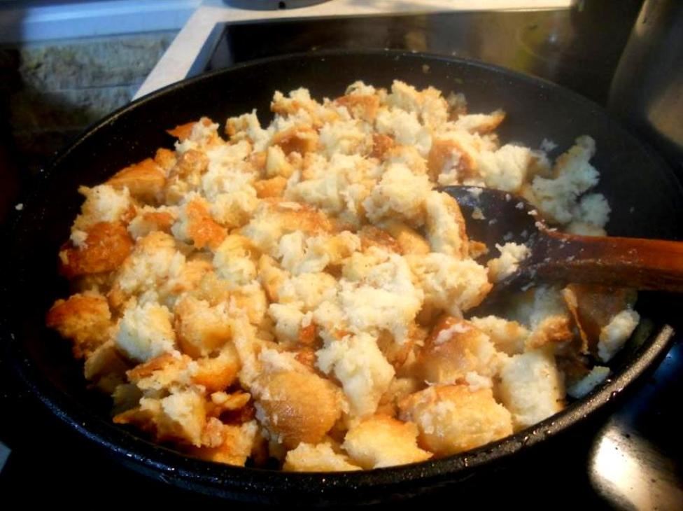 1 μπαγιάτικο ψωμί, 4-5 κουταλιὲς βούτυρο ἀγελάδος, ἁλάτι, 1 ½ φλιτζάνι νερό.