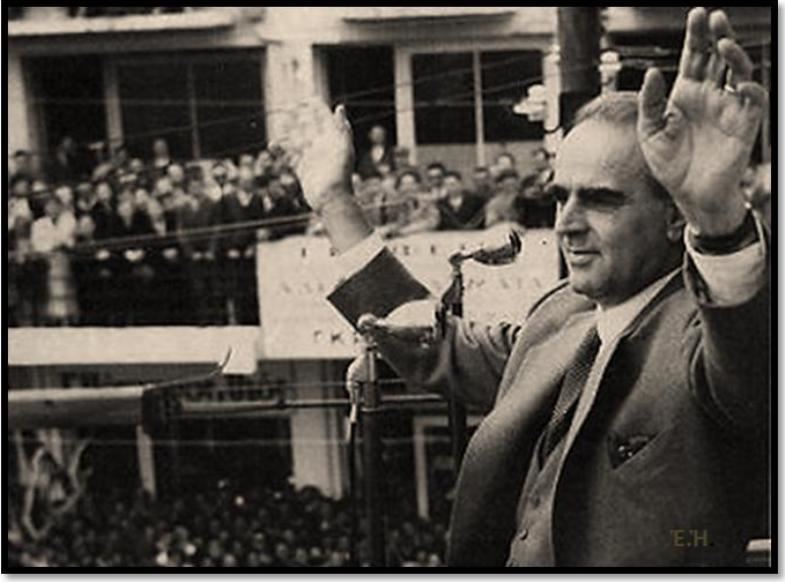 ……….Την ίδια στιγμή που οι Άγγλοι ενέτειναν τα καταπιεστικά μέτρα τους στην Κύπρο, οδηγώντας στις φυλακές εκατοντάδες Κυπρίους και αρχίζοντας να επιβάλλουν θανατικές καταδίκες, ο Καραμανλισμός αισθανόταν απόλυτη άνεση και συνεργαζόταν υπογείως με αυτούς, εκδηλώνοντας την αντίθεσή του προς τον Αγώνα. Αγώνα ενωτικό και εθνοπρεπή, ο οποίος αποτελούσε λαμπρή συνέχεια των εθνικών απελευθερωτικών αγώνων. Αγώνα ο οποίος δεν διανοείτο καν την «Ανεξαρτησία», δηλαδή την απόσχιση και αποξένωση από τον Εθνικό Κορμό.