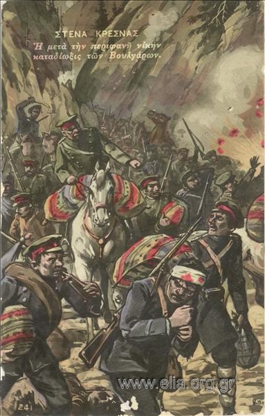1913.—Ο Ελληνικός Στρατός συνεχίζοντας την ηρωική του προέλαση, καταλαμβάνει τα στενά τής Κρέσνας· οι βούργαροι καταδιώκονται προς βορρά. Ταυτοχρόνως η VIII Μεραρχία διατάσσεται να προελάσει προς τα ανατολικά προς απελευθέρωση τής υπόλοιπης ανατολικής Μακεδονίας και δυτικής Θράκης. Απελευθερώνεται η Χρυσούπολη.