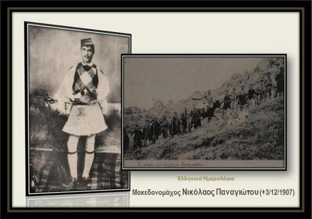 ……….Την αυγή τής 3 Δεκεμβρίου 1907, οι δύο μελλοθάνατοι, ο Νίκος Παναγιώτου από το Αγρίνιο κι ο Γιάννης Ούρδας από τις Σέρρες, οδηγήθηκαν στην αγχόνη. Τα δύο ικριώματα είχαν στηθεί στην πλατεία τού Ατ-Παζάρ, πίσω από το Διοικητήριο. Το αγριοβόρι κατέβαινε από τα χιονισμένα βουνά και ίσια πήγαινε και πάγωνε τα σώματα και τις ψυχές. Ο Νίκος ανέβηκε θαρρετά στο υπόβαθρο. Ήταν όμορφο παλικάρι μόλις 27 χρονών, στην ανθηρή ώρα τής νεότητας! Κι ενώ ο βρόγχος ήταν γύρω από το λαιμό του, στράφηκε στο πλήθος και είπε: