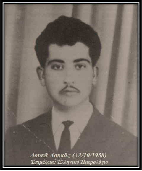 ……….Ο Λουκάς Λουκά, που βρισκόταν την ώρα εκείνη στο σπίτι συναγωνιστή και συμμαθητή του, ξεκίνησε να πάει στο δικό του σπίτι, που ήταν δίπλα. Άγγλοι στρατιώτες που περιπολούσαν στους δρόμους τον άρπαξαν και κτυπώντας τον ανελέητα με ρόπαλα τον σκότωσαν. Το πόρισμα τού θανατικού ανακριτή γιά τα αίτια που προκάλεσαν τον θάνατό του, έχει ως ακολούθως : «Ο θάνατος τού Λουκά Ανδρέα Λουκά ωφείλετο σε εσωτερικήν αιμορραγίαν που προκλήθηκε από θλάσιν τής αριστεράς μηνιγγίου αρτηρίας. Η θλάσις προξενήθηκε από κτύπημα αμβλέος οργάνου, το οποίον επέφερε κάταγμα στο κρανίον πάνω από το αριστερόν αυτί».