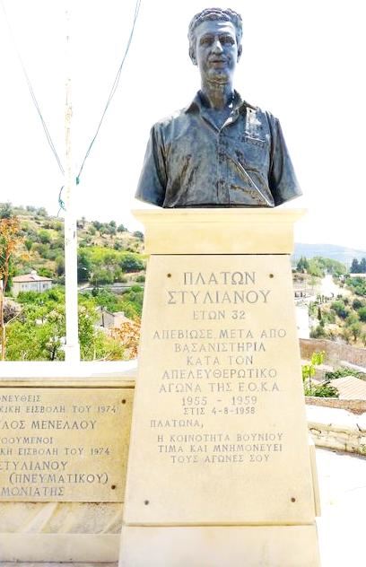 ……….Ο Στυλιανού Πλάτων γεννήθηκε στο χωριό Βουνί, τής επαρχίας Λεμεσού, στις 26 Οκτωβρίου 1922. Πέθανε στις 4 Αυγούστου 1958 από βασανιστήρια των Άγγλων, στο Λανίτειο Γυμνάσιο Λεμεσού. Σύζυγος: Καλλιόπη Στυλιανού. Τέκνα: Θεόδωρος, Ανδρέας, Μάριος, Πέτρος, Δημήτρης, Αθηνούλα. Γονείς: Στυλιανός και Ελένη Στυλιανού. Αδέλφια : Αγαθονίκη, Μαρία, Ιωάννης, Γιώργος, Κώστας, Χριστόδουλος, Χριστοθέα, Χαράλαμπος.